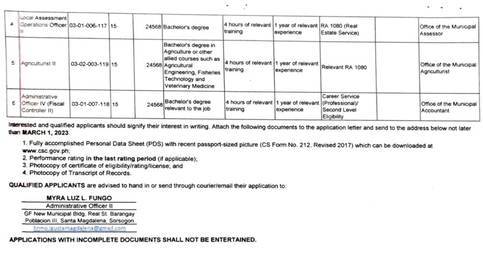 HIRING !! POSITION TITLE: REVENUE COLLECTION CLERK III PLANTILLA ITEM NO.: 03-01-005-026 SALARY/JOB/PAY GRADE: 9 MONTHLY SALAR: 16664 For more...